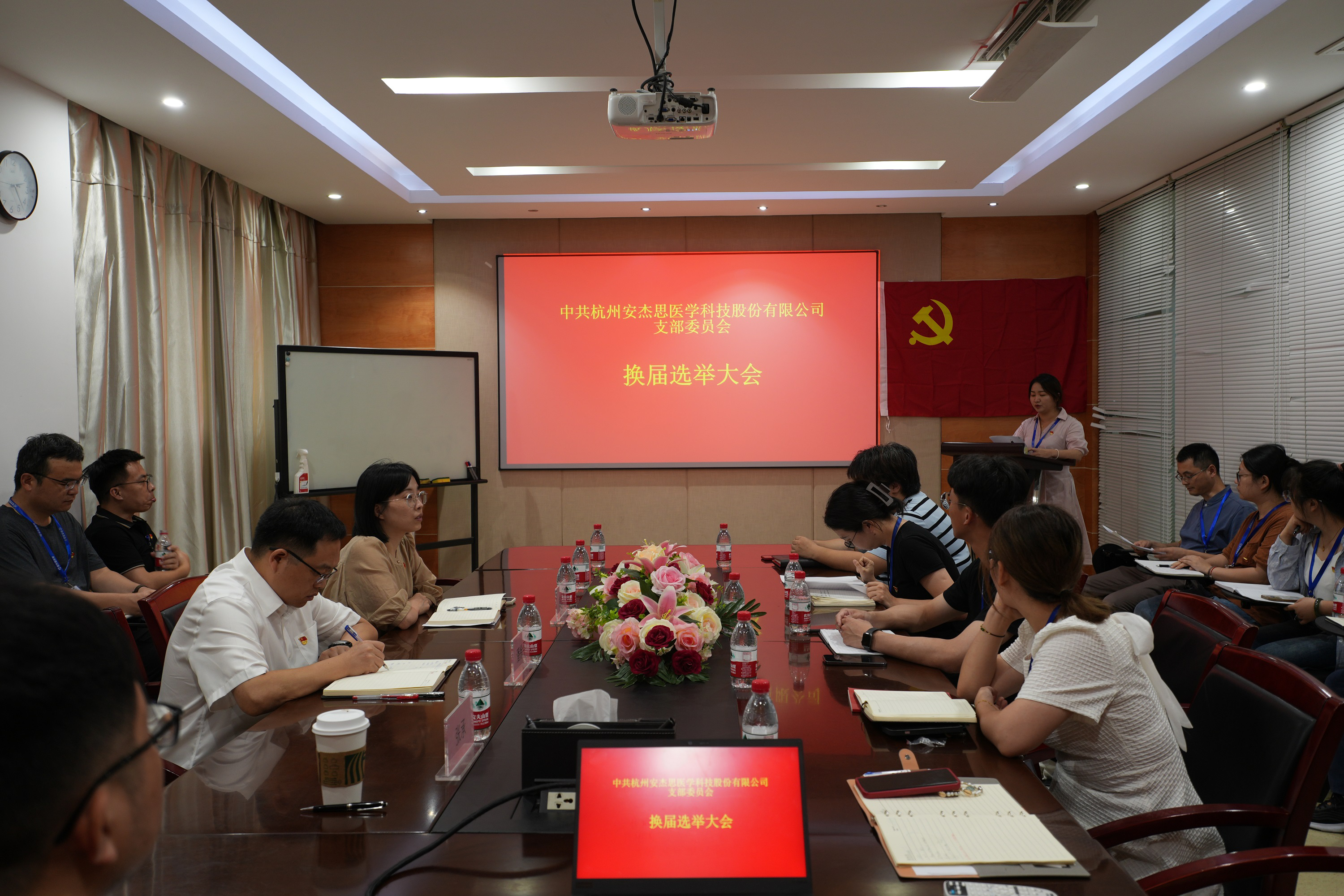 为深入推进党建工作开展,进一步加强基层党支部建设,7月18日,中共凯发K8旗舰厅医学科技股份有限公司党支部召开支部党员大会,进行换届选举工作。开发区党工委副书记、管委会副主任潘徐平、施维青出席会议并讲话,19名党员佩戴党徽庄严参会,大会由安杰思医学党支部成员、财务总监陈君灿主持。