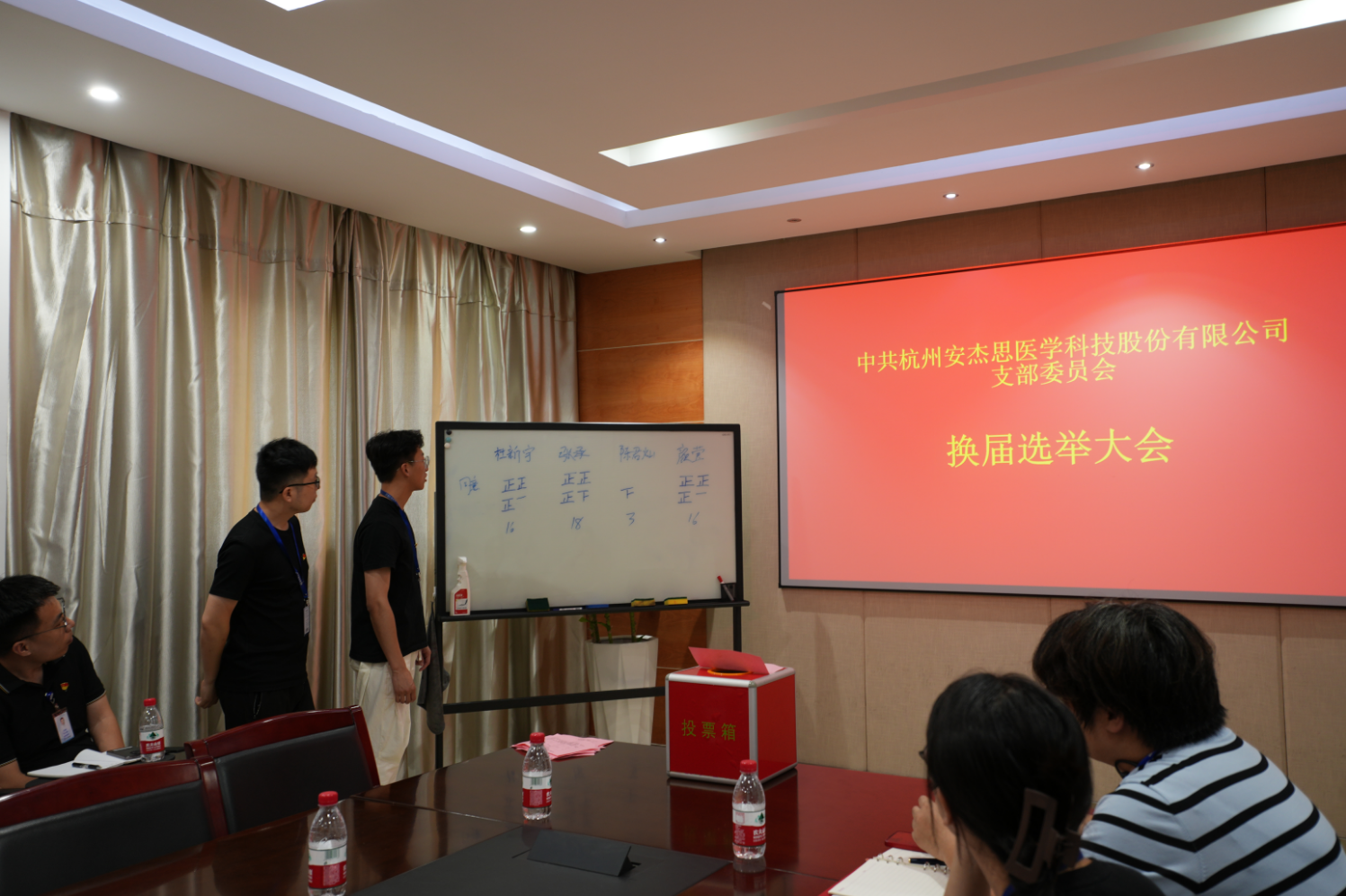 换届选举完成后,党支部书记张承同志首先对全体党员的信任和支持表示感谢,他表示将不负重托,带领全体党员更好地担负起责任,会更加积极地支持和投身安杰思党建工作,同舟共济、群策群力,发扬党员先锋模范作用。当干事先锋、做合格党员,不断推动公司各项工作再上新台阶,奋力谱写安杰思医学新篇章。