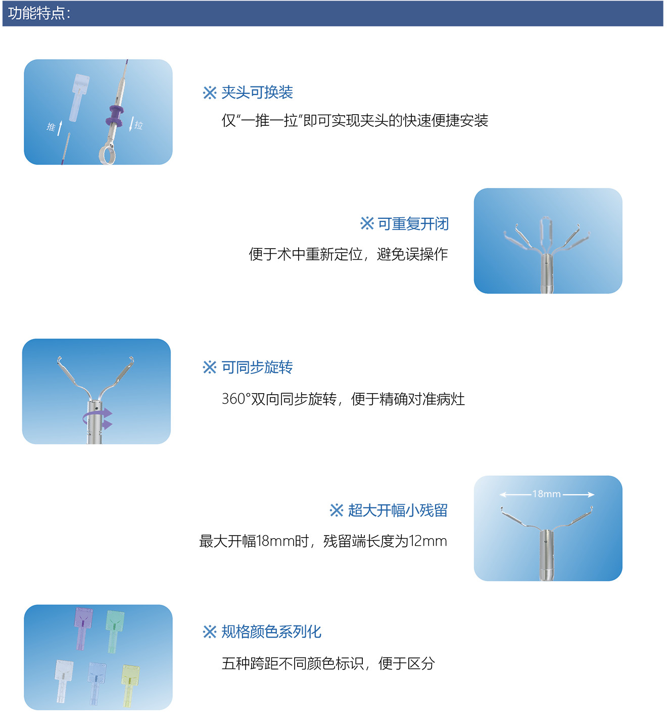 适用范围:该产品适用于与内窥镜配套使用,在内镜可视情况下在上、下消化道内放置夹子部件,对各种原因引起的上、下消化道出血:如动脉性出血、持续性渗血、血管残端出血等需进行机械止血或创面缝合治疗。