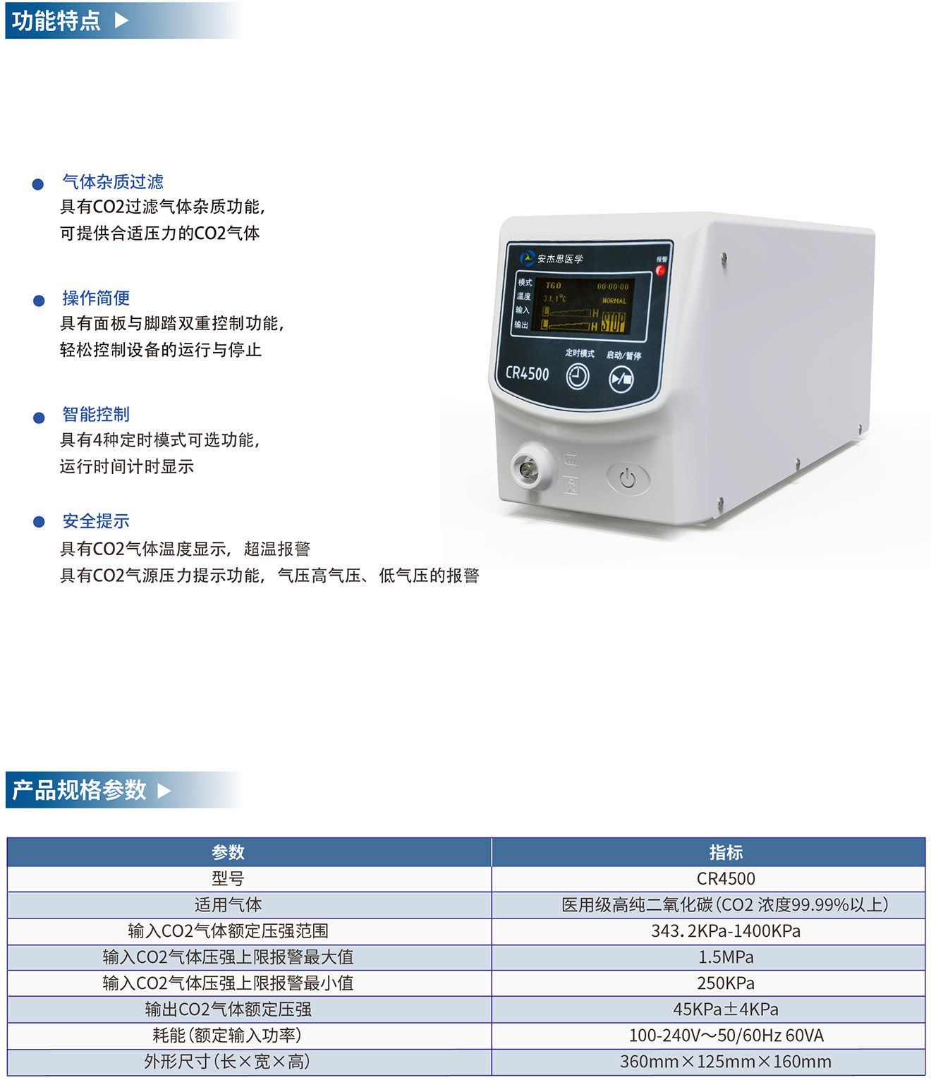 产品用于注入二氧化碳气体,送气仅适用于上、下消化道。