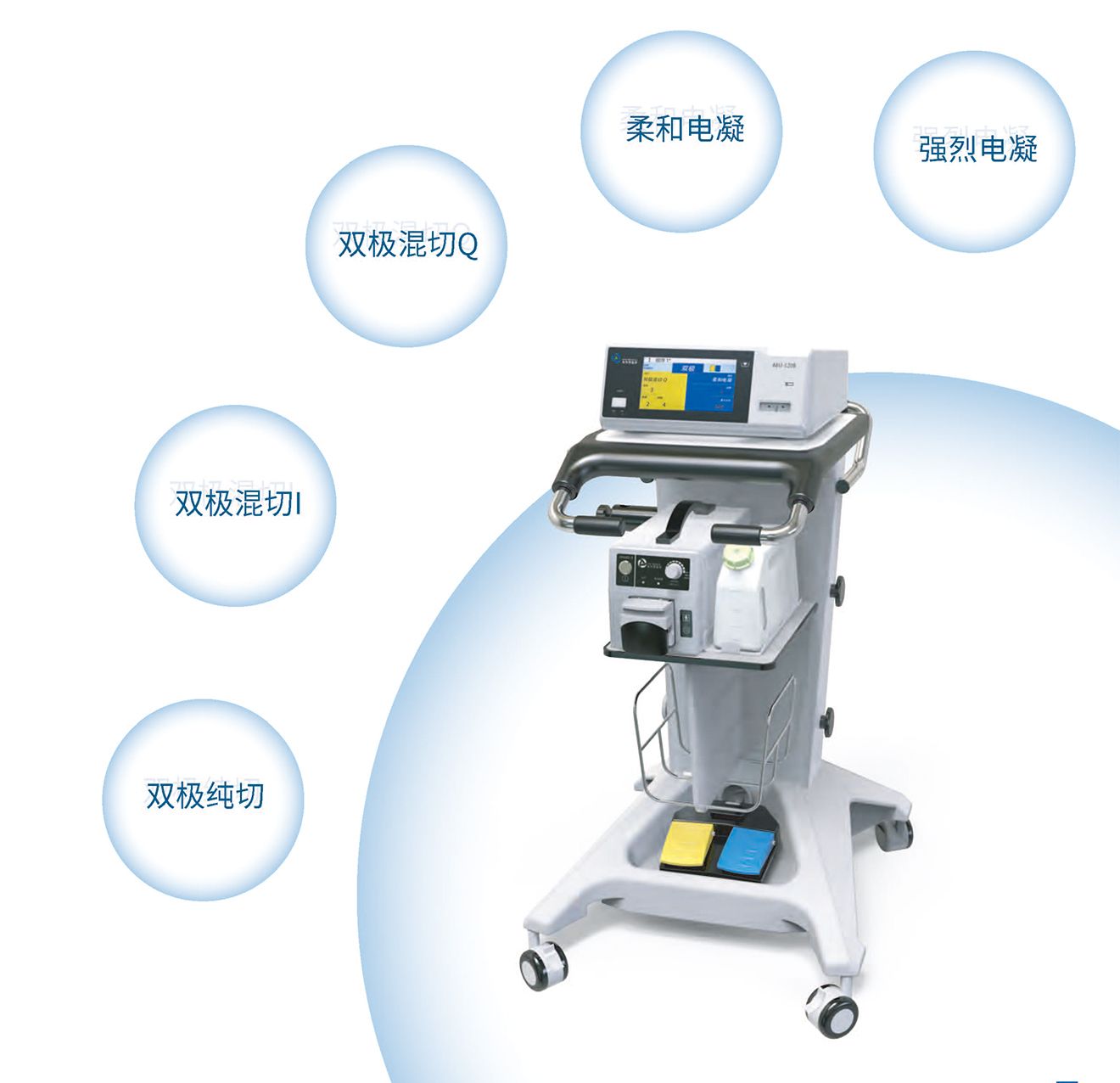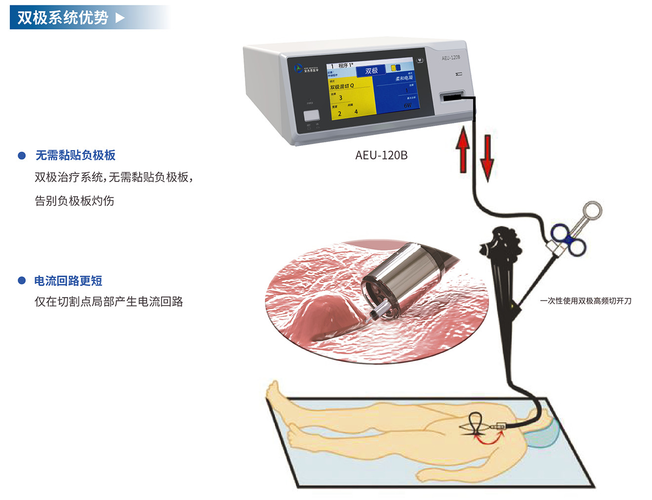 产品在医疗机构使用,与本公司生产的双极手术附件配合,用于手术中对人体组织进行切割凝固